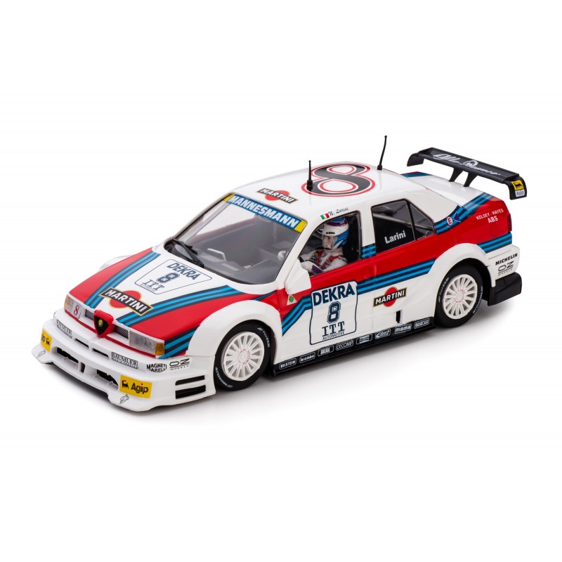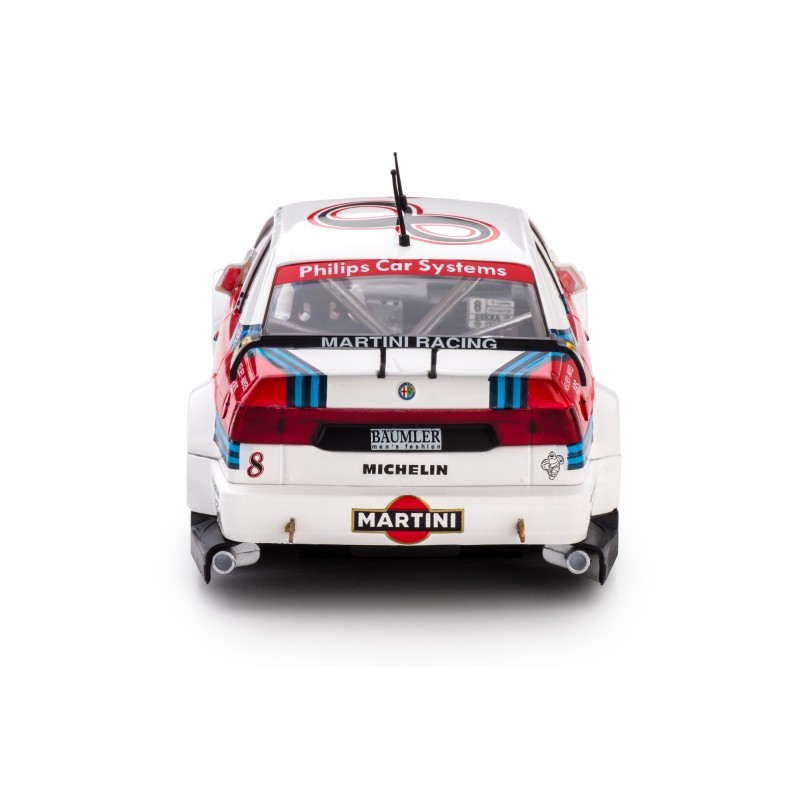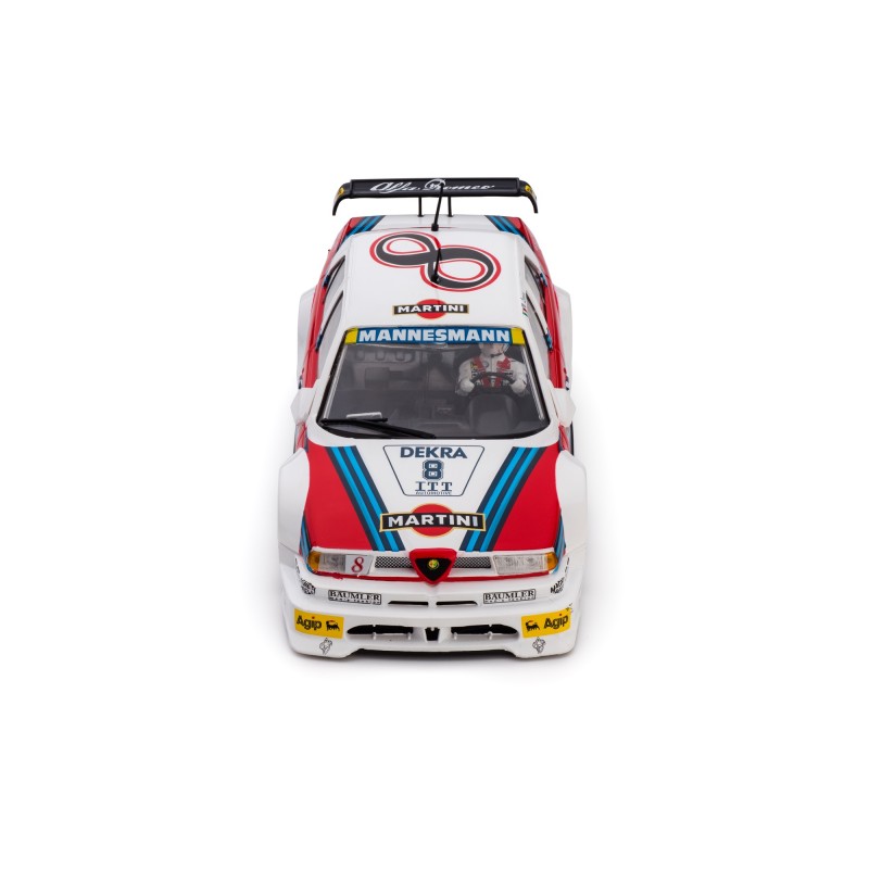 The Alfa Romeo 155 V6 TI is a racing car built to race in the DTM (Deutsche Tourenwagen Meisterschaft) series in 1993. At that time the German Touring Car Championship was the peak of technology for touring car racing, and it reserved for cars of Class 1 (first division or D1). In 1995, alongside DTM, the so called ITC – International Touring Car Championship – was also raced. The two series shared the same set of rules. For the 1995 racing season, Alfa Romeo’s 155 was turned into a more radical car, but to the expense of its reliability. Despite their best effort, Alfa Romeo’s works 155 only took one ITC victory and a few podiums. Private teams scored overall three wins in the DTM championship, respectively thanks to Euroteam and Schuebel Engineering. This car reproduces the works team’s number 8 as it raced on the city ‘Avus Ring’ circuit of Berlin, driven by former Formula 1 driver and DTM world champion Nicola Larini.